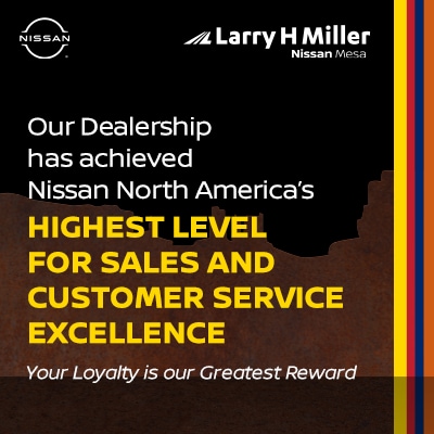At Larry H. Miller Nissan Mesa we offer new Nissan cars, along with used cars, trucks and SUVs by top manufacturers. We are committed to providing the best possible customer service to every person who walks through our door, gives us a call, or contacts us digitally. Our sales staff's primary goal is to help you find that new or used car that's perfect for your needs and budget, that you've been searching for in the Phoenix metro area.