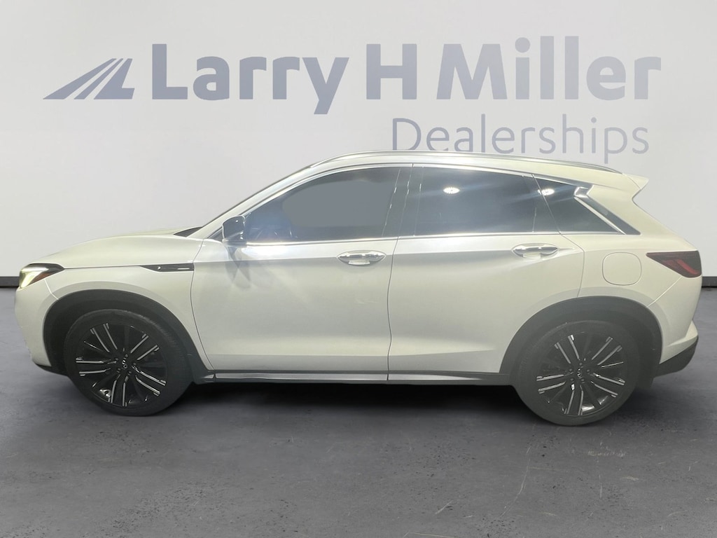 This 2021 Majestic White INFINITI QX50 LUXE FWD is well equipped and includes these features and benefits: Appearance Package (Black Grille Mesh, Black Outside Mirror Caps, Body Color Rear Diffuser, Dark Chrome Front Fender Accent, Dark Chrome Front Grille Surround, Dark Chrome Tailgate Finisher, Graphite Headliner, Heated Outside Mirrors, and Wheels: 20 Black and Machine Finished), 4-Wheel Disc Brakes, 5.846 Axle Ratio, 6 Speakers, ABS brakes, Air Conditioning, Alloy wheels, AM/FM radio: SiriusXM, AM/FM/CD Audio System, Anti-whiplash front head restraints, Apple CarPlay/Android Auto, Auto High-beam Headlights, Auto-dimming Rear-View mirror, Automatic temperature control, Brake assist, Bumpers: body-color, CD player, Delay-off headlights, Driver door bin, Driver vanity mirror, Dual front impact airbags, Dual front side impact airbags, Electronic Stability Control, Emergency communication system: INFINITI InTouch, Exterior Parking Camera Rear, Floor Mats, Four wheel independent suspension, Front anti-roll bar, Front Bucket Seats, Front Center Armrest, Front dual zone A/C, Front fog lights, Front reading lights, Garage door transmitter: HomeLink, Heated Front Bucket Seats, Heated front seats, Illuminated entry, Illuminated Kick Plates, Knee airbag, Leather Shift Knob, Leatherette Seat Trim, Literature Kit, Low tire pressure warning, Occupant sensing airbag, Outside temperature display, Overhead airbag, Overhead console, Panic alarm, Passenger door bin, Passenger vanity mirror, Power door mirrors, Power driver seat, Power Liftgate, Power moonroof, Power passenger seat, Power steering, Power windows, Radio data system, Rear anti-roll bar, Rear Parking Sensors, Rear reading lights, Rear seat center armrest, Rear side impact airbag, Rear window defroster, Rear window wiper, Remote keyless entry, Security system, Speed control, Speed-sensing steering, Speed-Sensitive Wipers, Splash