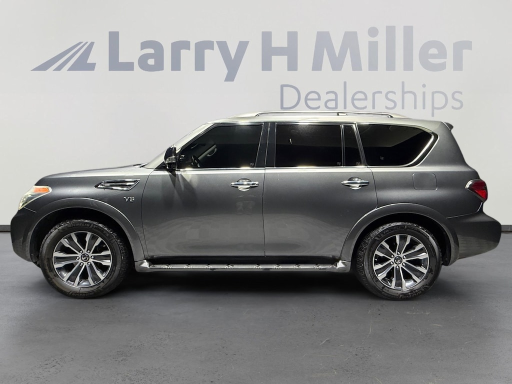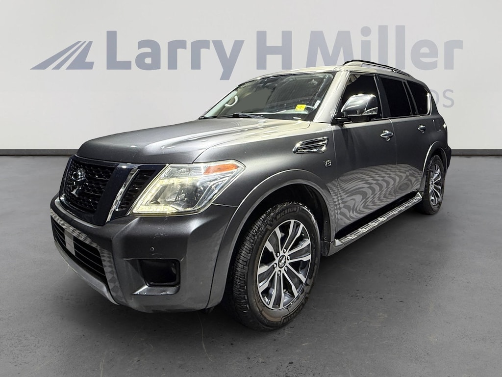 This 2018 Gun Metallic Nissan Armada SL RWD is well equipped and includes these features and benefits: 13 Speakers, 2.937 Axle Ratio, 2nd & 3rd Row Carpeted Mats, 3rd row seats: split-bench, 4-Wheel Disc Brakes, ABS brakes, Activation Disclaimer, Air Conditioning, Alloy wheels, AM/FM radio: SiriusXM, Anti-whiplash front head restraints, Auto tilt-away steering wheel, Auto-dimming door mirrors, Auto-dimming Rear-View mirror, Auto-leveling suspension, Automatic temperature control, Brake assist, Bumpers: body-color, CD player, Delay-off headlights, Driver door bin, Driver vanity mirror, Dual front impact airbags, Dual front side impact airbags, Electronic Stability Control, Emergency communication system: NissanConnect Services, Four wheel independent suspension, Front anti-roll bar, Front Bucket Seats, Front Center Armrest, Front dual zone A/C, Front fog lights, Front reading lights, Fully automatic headlights, Garage door transmitter: HomeLink, Heated door mirrors, Heated Front Bucket Seats w/Driver Memory, Heated front seats, Illuminated entry, Leather Shift Knob, Leather-Appointed Seat Trim, Low tire pressure warning, Memory seat, Navigation System, Occupant sensing airbag, Outside temperature display, Overhead airbag, Overhead console, Panic alarm, Passenger door bin, Passenger vanity mirror, Power door mirrors, Power driver seat, Power Liftgate, Power passenger seat, Power steering, Power windows, Radio data system, Radio: Bose AM/FM/SXM/CD/MP3/HD Radio, Rain sensing wipers, Rear air conditioning, Rear anti-roll bar, Rear reading lights, Rear seat center armrest, Rear window defroster, Rear window wiper, Reclining 3rd row seat, Remote keyless entry, Roof rack: rails only, Security system, Speed control, Speed-sensing steering, Speed-Sensitive Wipers, Split folding rear seat, Spoiler, Steering wheel memory, Steering wheel mounted audio controls, Tachometer, Telescoping steering wheel, Tilt steering wheel, Traction control, Trip computer, Turn signal indicator mirrors, Variably intermittent wipers, Voltmeter, and Wheels: 20 Machined Finish Painted Alloy. Recent Arrival!