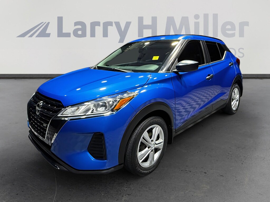 This 2022 Electric Blue Metallic Nissan Kicks S FWD is well equipped and includes these features and benefits: 16 Steel Wheels w/Full Covers, 3.927 Axle Ratio, 6 Speakers, ABS brakes, Air Conditioning, AM/FM radio, Apple CarPlay/Android Auto, Auto High-beam Headlights, Blind Spot Warning, Brake assist, Bumpers: body-color, Carpeted Floor Mats w/Cargo Mat, Center Armrest w/Storage, Cloth Seat Trim, Driver door bin, Driver vanity mirror, Driver's Seat Mounted Armrest, Dual front impact airbags, Dual front side impact airbags, Electronic Stability Control, Front anti-roll bar, Front Bucket Seats, Front reading lights, Front wheel independent suspension, Fully automatic headlights, Illuminated entry, Knee airbag, Low tire pressure warning, Occupant sensing airbag, Outside temperature display, Overhead airbag, Panic alarm, Passenger door bin, Passenger vanity mirror, Power door mirrors, Power steering, Power windows, Radio data system, Radio: AM/FM Audio System, Rear Parking Sensors, Rear reading lights, Rear side impact airbag, Rear window defroster, Rear window wiper, Remote keyless entry, Speed control, Splash Guards Grain (4 Piece), Split folding rear seat, Sport steering wheel, Steering wheel mounted audio controls, Tachometer, Telescoping steering wheel, Tilt steering wheel, Traction control, Trip computer, and Variably intermittent wipers. Recent Arrival! Odometer is 15556 miles below market average! 31/36 City/Highway MPG