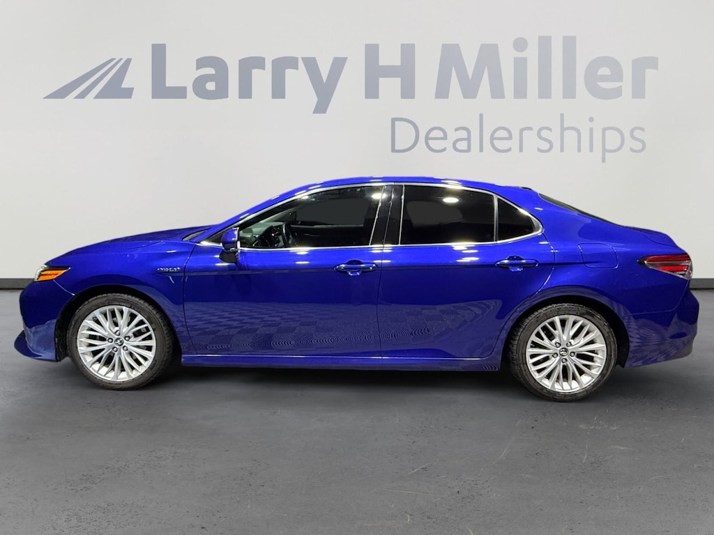 This 2018 Blue Toyota Camry Hybrid XLE FWD is well equipped and includes these features and benefits: 2.5L I4 Hybrid DOHC, 4-Wheel Disc Brakes, 6 Speakers, ABS brakes, Air Conditioning, Alloy wheels, AM/FM radio, Auto High-beam Headlights, Auto-dimming Rear-View mirror, Automatic temperature control, Brake assist, Bumpers: body-color, Chrome wheels, Compass, Delay-off headlights, Driver door bin, Driver vanity mirror, Dual front impact airbags, Dual front side impact airbags, Electronic Stability Control, Exterior Parking Camera Rear, Four wheel independent suspension, Front anti-roll bar, Front Bucket Seats, Front Center Armrest, Front dual zone A/C, Front reading lights, Fully automatic headlights, Garage door transmitter: HomeLink, Heads-Up Display, Heated door mirrors, Heated front seats, Illuminated entry, Knee airbag, Leather Shift Knob, Low tire pressure warning, Multi-Stage Heated Front Bucket Seats, Occupant sensing airbag, Outside temperature display, Overhead airbag, Overhead console, Panic alarm, Passenger door bin, Passenger vanity mirror, Power door mirrors, Power driver seat, Power passenger seat, Power steering, Power windows, Quilted Perforated Leather Seat Trim, Radio data system, Radio: Entune 3.0 Audio, Rear anti-roll bar, Rear reading lights, Rear seat center armrest, Rear side impact airbag, Rear window defroster, Remote keyless entry, Security system, Speed control, Speed-sensing steering, Split folding rear seat, Steering wheel mounted audio controls, Telescoping steering wheel, Tilt steering wheel, Traction control, Trip computer, Turn signal indicator mirrors, Variably intermittent wipers, and Wheels: 8.0J x 18 Chrome Machined-Finish Alloy. Recent Arrival! Odometer is 10767 miles below market average! 44/47 City/Highway MPG